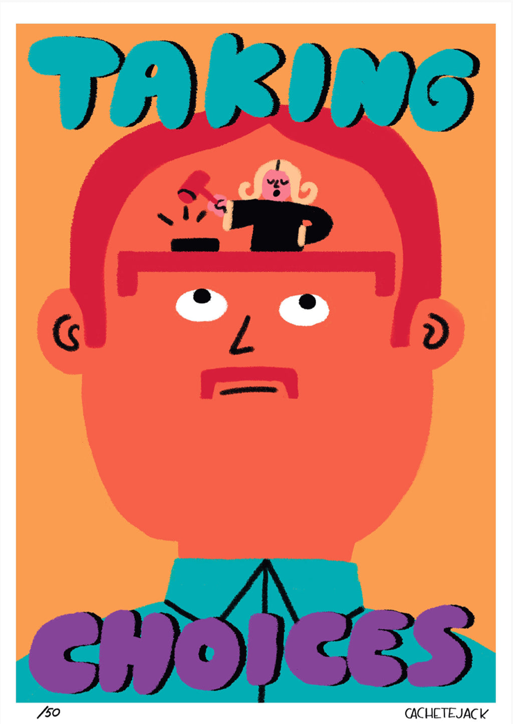 Their illustration universe is full of colors, energy, humour and irony. The hand drawn work of Cachetejack takes a fresh and unique style working in a variety of mediums, including—but not limited to—books, magazines, newspapers, clothing, drawing, painting, walls and illustration.