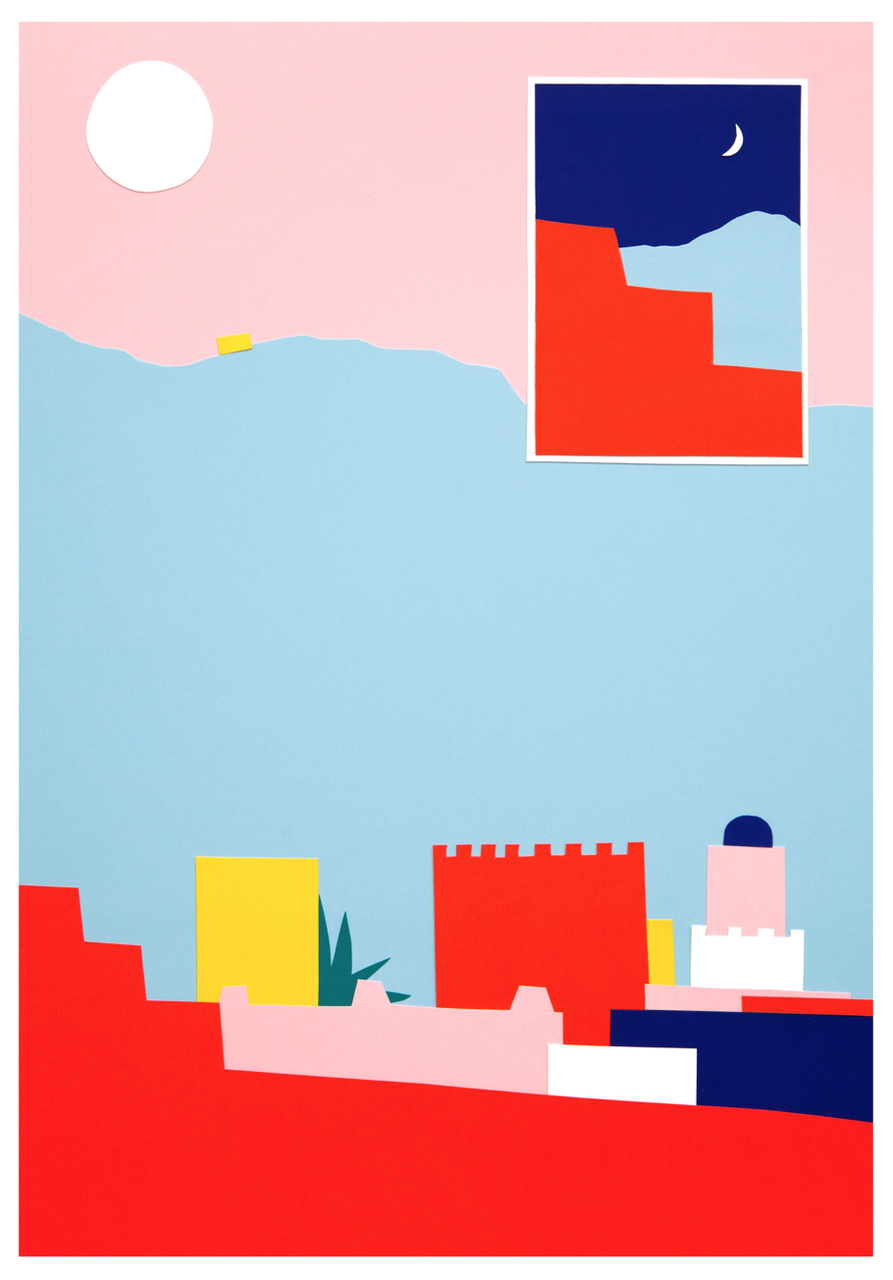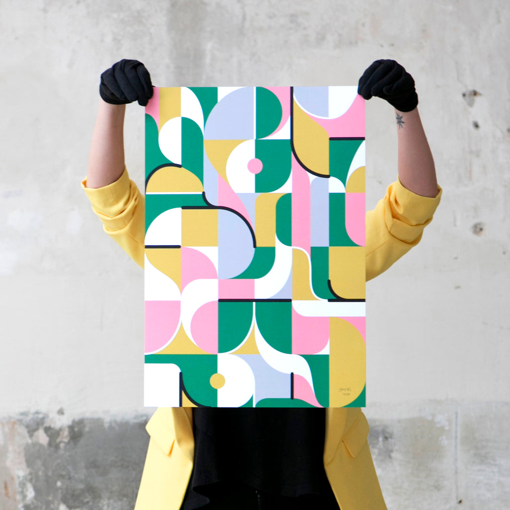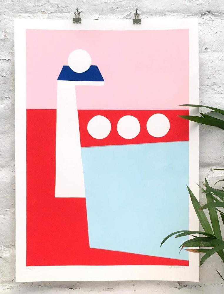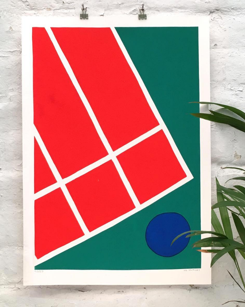 Figures, simple elements, saturated colors and geometries. Works for lovers of graphic design and simple shapes.
