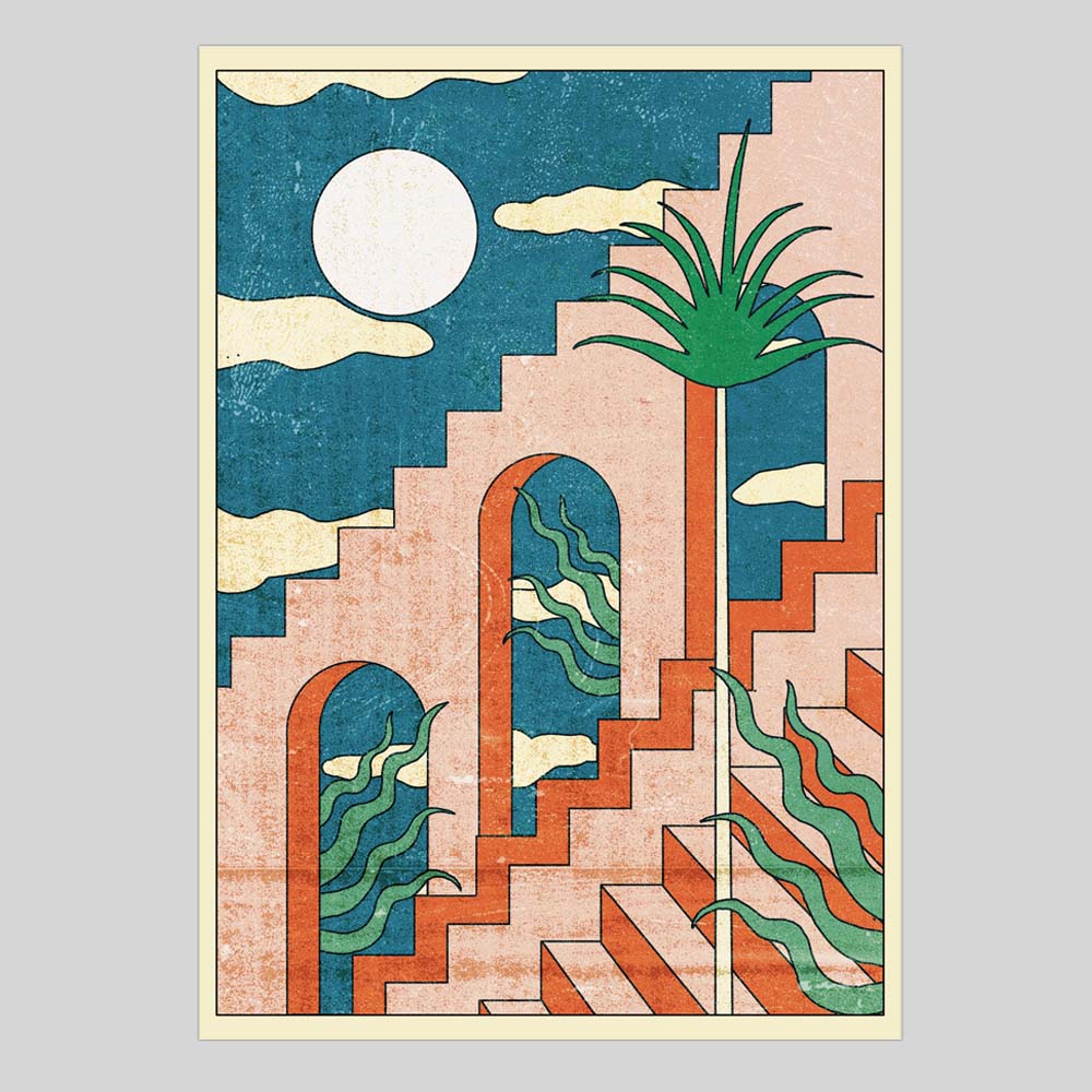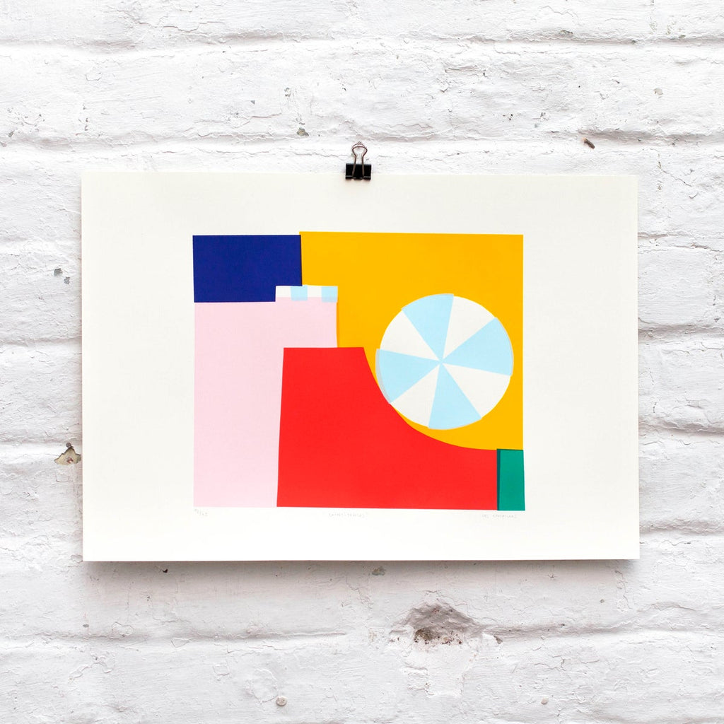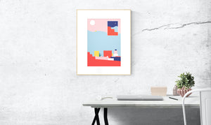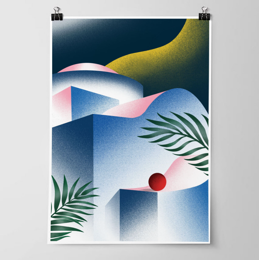 Figures, simple elements, saturated colors and geometries. Works for lovers of graphic design and simple shapes.