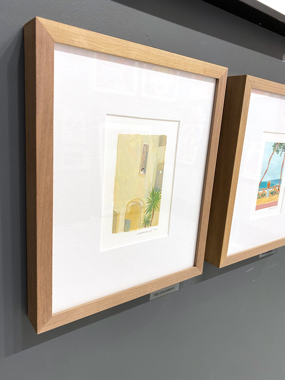 Enmarcación de producción local incluida en el precio. Marco de madera maciza de mansonia con paspartú blanco y cristal 2mm. Local production framing included. Custom massive mansonia wood with white passe-partout and 2mm glass.