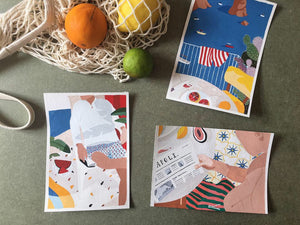 Actualmente, vive y trabaja en Annecy, una ciudad preciosa en la zona de los Alpes franceses. Cree que hay algo delicado en sus pinturas. Le gusta representar mujeres en un contexto, normalmente situada en escenas de interior, con plantas y flores. Su trabajo siempre busca el color, como algo natural en ella, con luces y sombras, quizá como influencia de la luz de España, que a menudo echa de menos. A veces su trabajo puede inspirar calma y positivismo, pero le gusta jugar con la melancolía y la ironía en algunas de sus ilustraciones. Experimenta con muchos medios. Desde pinturas gouache sobre papel hasta piezas textiles o cerámicas ilustradas.