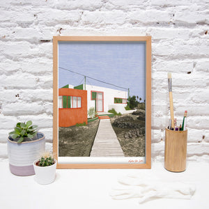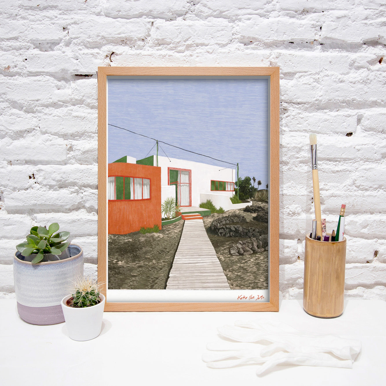The A5 format is framed on a 24 x 18 cm frame (9,5 x 7,1 in) and also has a custom-made white mat.