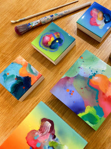 Esmalte acrílico y espray sobre madera con acabado epoxi