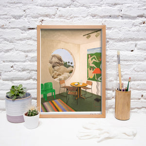 The A5 format is framed on a 24 x 18 cm frame (9,5 x 7,1 in) and also has a custom-made white mat.