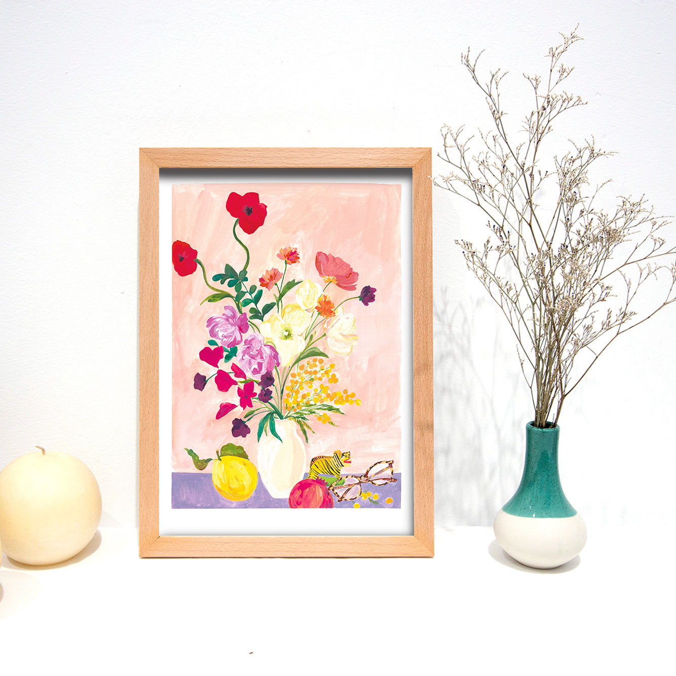 The optional frame is made of wood with beech plywood and 2mm glass. Two sockets are included to hang it.
