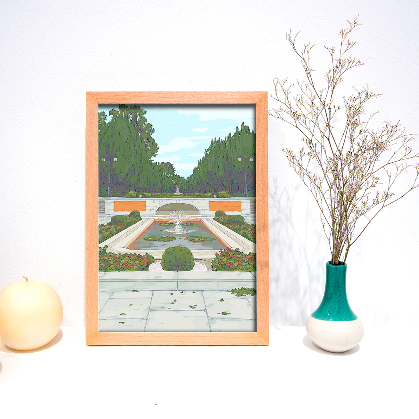 The optional frame is made of wood with beech plywood and 2mm glass. A socket is included to hang it.
