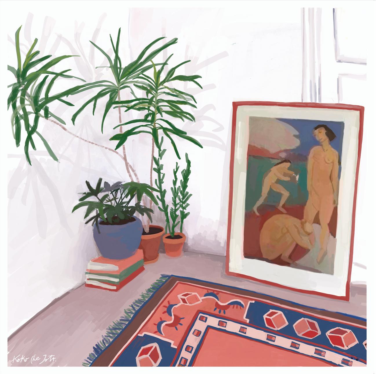 The A5 format is framed on a 24 x 18 cm frame (9,5 x 7,1 in) and also has a custom-made white mat.