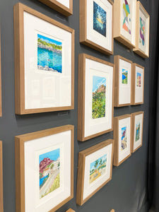 Enmarcación de producción local incluida en el precio. Marco de madera maciza de mansonia con paspartú blanco y cristal 2mm. Local production framing included. Custom massive mansonia wood with white passe-partout and 2mm glass.