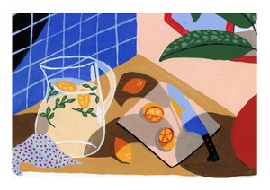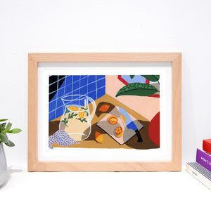 The A5 format is framed on a 24 x 18 cm frame (9,5 x 7,1 in) and also has a custom-made white mat.