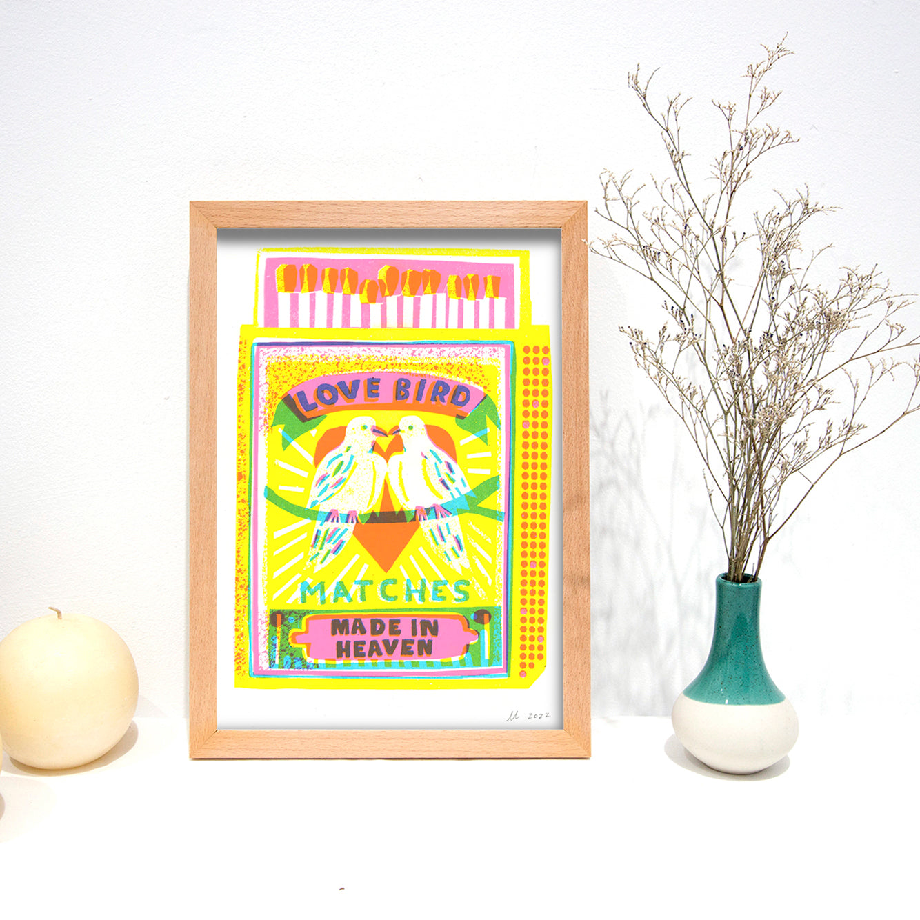 The optional frame is made of wood with beech plywood and 2mm glass. A socket is included to hang it.