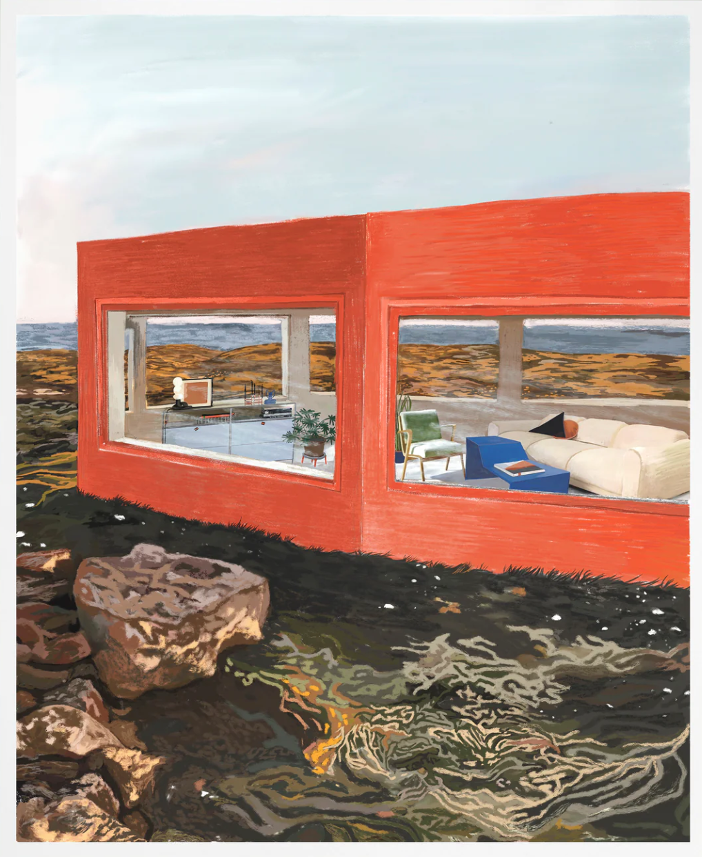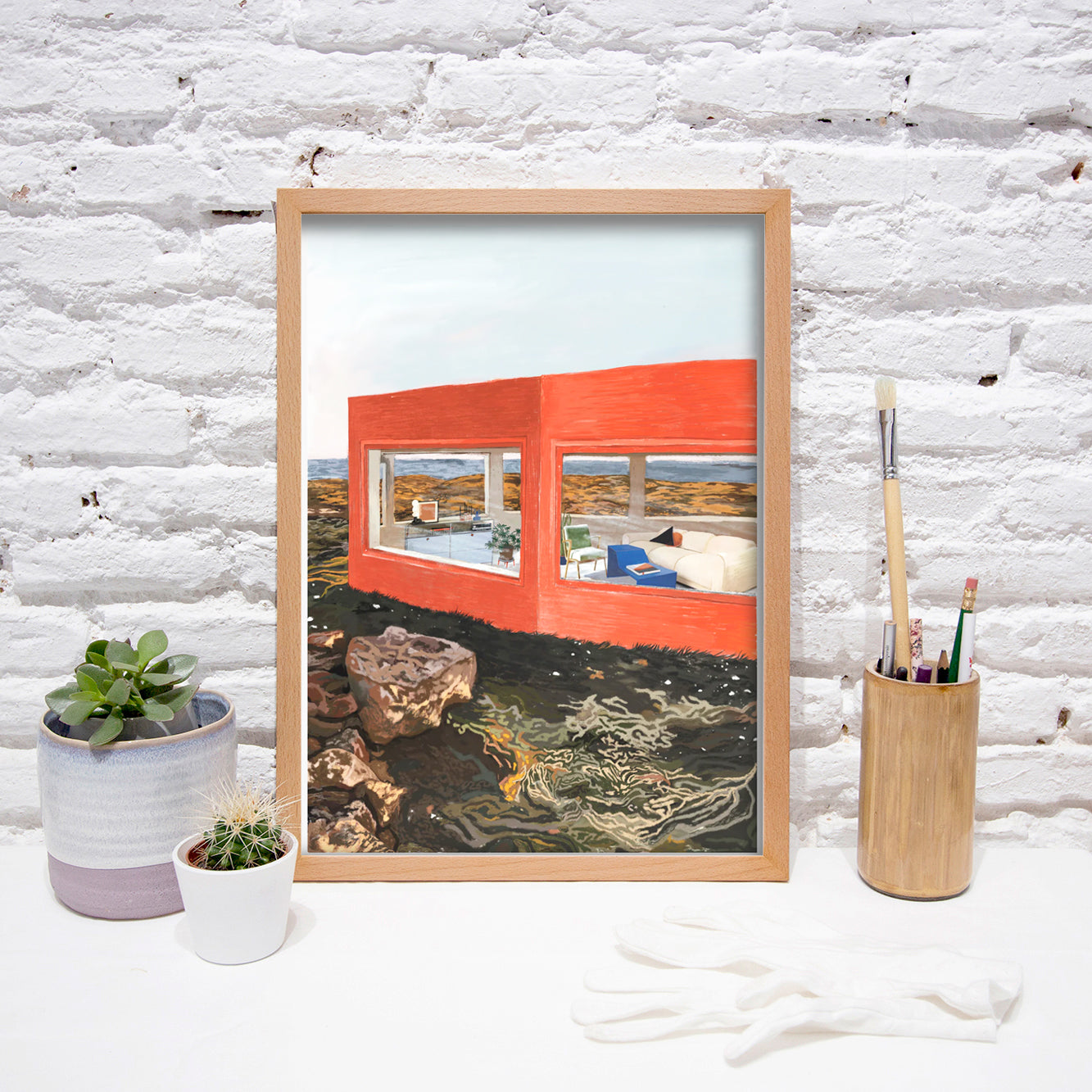 The A5 format is framed on a 24 x 18 cm frame (9,5 x 7,1 in) and also has a custom-made white mat.
