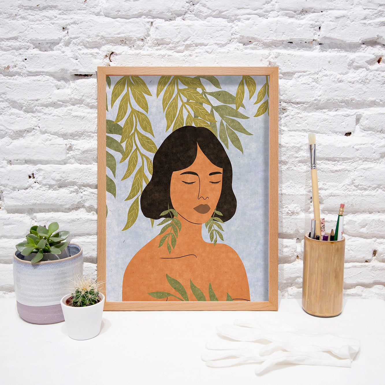The optional frame is made of wood with beech plywood and 2mm glass. Two sockets are included to hang it.