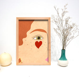 The optional frame is made of wood with beech plywood and 2mm glass. Two sockets are included to hang it.