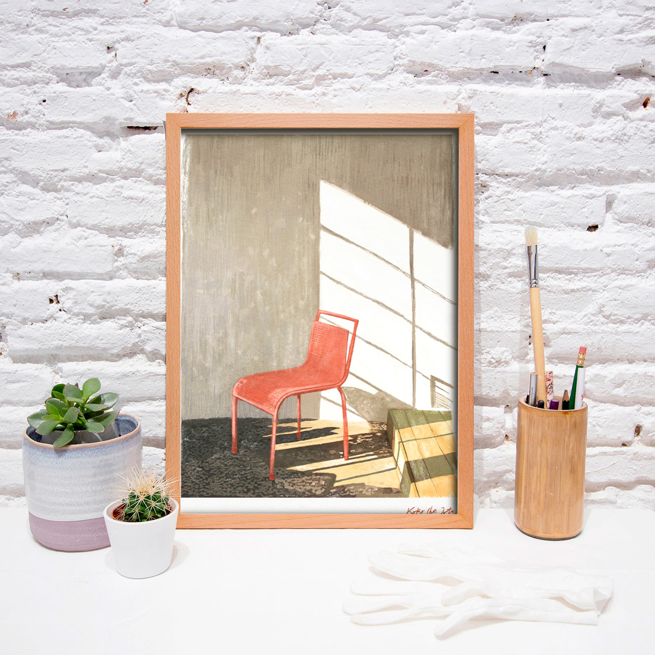 The A5 format is framed on a 24 x 18 cm frame (9,5 x 7,1 in) and also has a custom-made white mat.