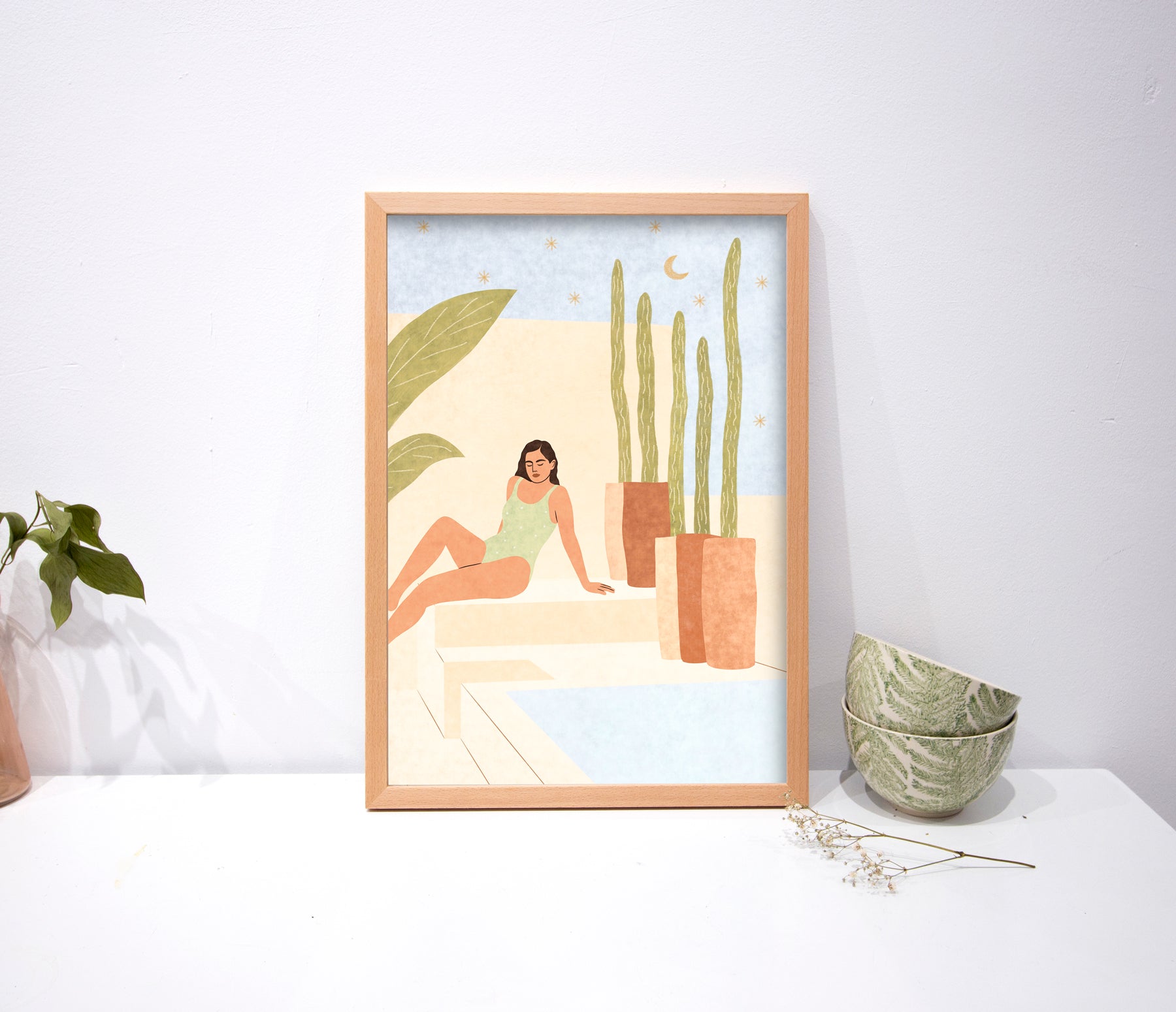 The optional frame is made of wood with beech plywood and 2mm glass. Two sockets are included to hang it.