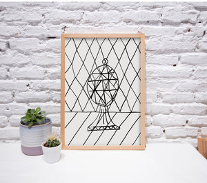 The optional frame is made of wood with beech plywood and 2mm glass. A socket is included to hang it.