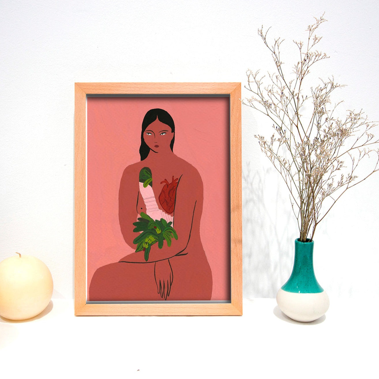 The optional frame is made of wood with beech plywood and 2mm glass. Two sockets are included to hang it.