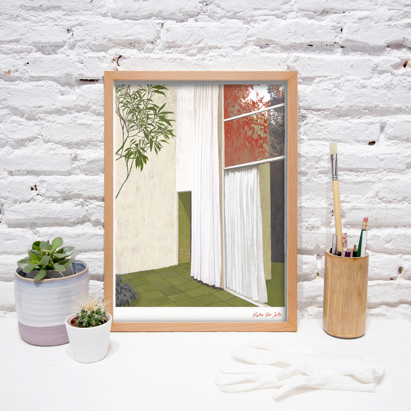 The A5 format is framed on a 24 x 18 cm frame (9,5 x 7,1 in) and also has a custom-made white mat.
